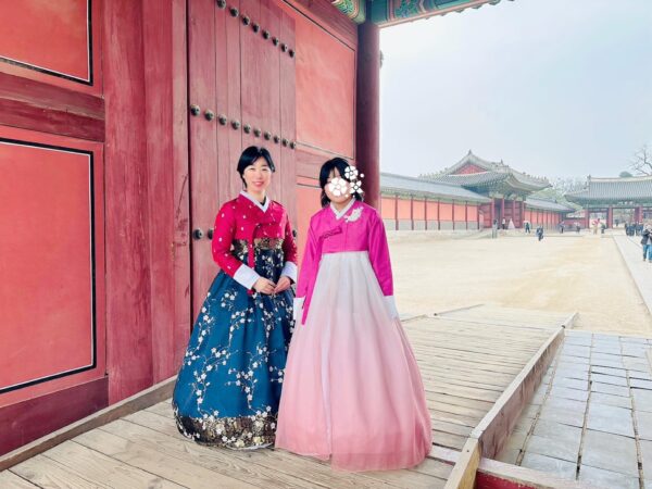 昌徳宮の近くのhanboknamというお店で、家族みんなで韓服を着て観光したり写真を撮ったり。